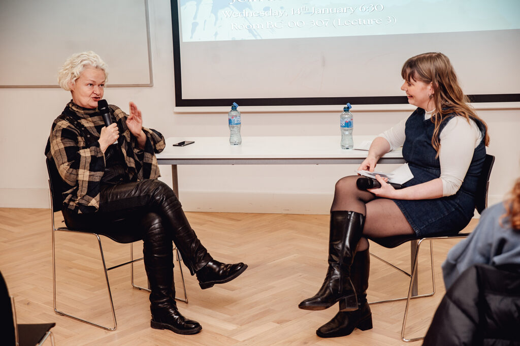 What struck me most was how directly Fiona spoke about access. She was clear: she didn’t come from a media family, didn’t have an easy route in, and didn’t follow a neat career path. She talked about writing to strangers, volunteering for the hardest jobs, saying yes before feeling ready, and making herself indispensable by being adaptable, practical, and relentless. She illustrated this with concrete and unglamorous examples which kept the audience engaged and intrigued throughout.